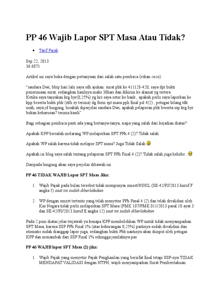 PP 46 Wajib Lapor SPT Masa Atau Tidak