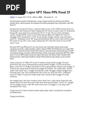 Kelebihan Setoran PPh 25 July 2020? Harus diapakan?? Halaman 1 - Kompasiana.com