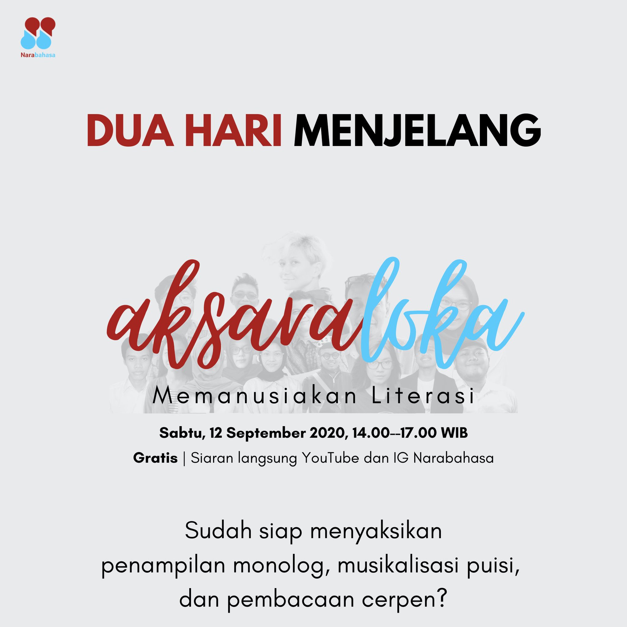 Narabahasa Twitter: “Dua hari menjelang Aksaraloka! Sudah siapkah Kerabat Nara menonton pertunjukan dari Svatuhari dan @Sasina_? Jangan lupa catat tanggal dan tempatnya, ya: 12 September 2020 di kanal Youtube dan akun
