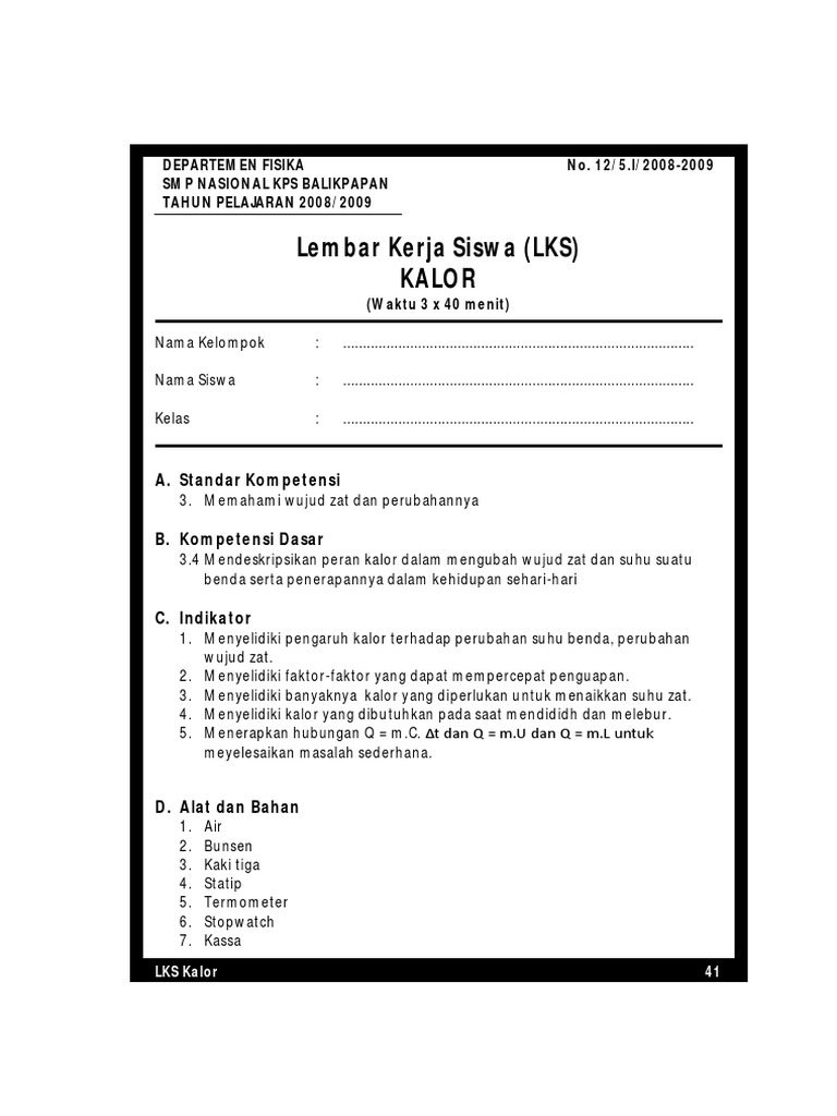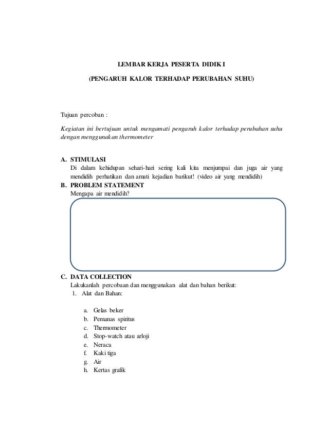 LEMBAR KERJA SISWA PENGARUH KALOR TERHADAP SUHU DAN WUJUD ZAT …