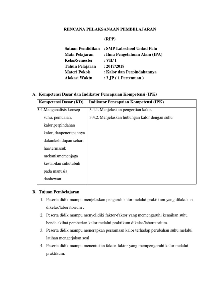 DOC) RPP Kalor Pertemuan 1 debi | debi kejora - Academia.edu