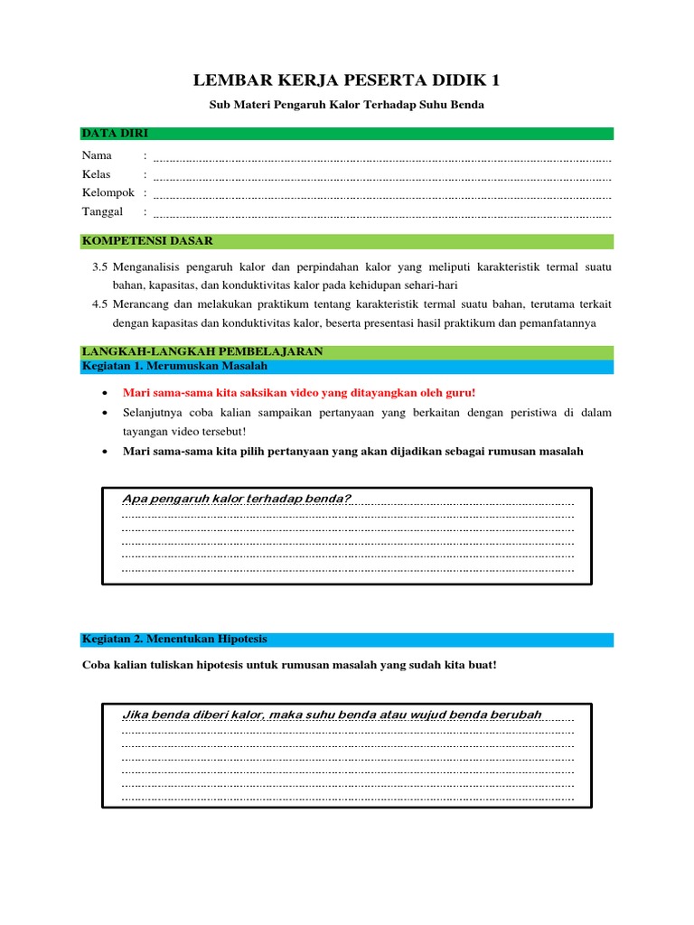 Lembar kerja peserta didik i suhu dan kalor