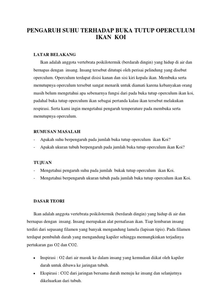 DOC) PENGARUH PERUBAHAN SUHU PANAS DAN SUHU DINGIN MEDIA AIR TERHADAP MEMBUKA DAN MENUTUP OPERCULUM BENIH IKAN MAS | Suci Febnikayani - Academia.edu