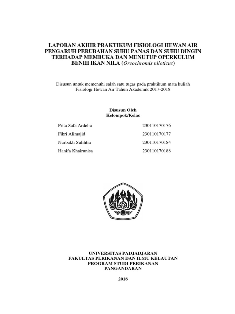 Laporan Akhir Praktikum Fisiologi Hewan Air Pengaruh Perubahan Suhu Panas Dan Suhu Dingin Terhadap Membuka Dan Menutup Operkulum BENIH IKAN NILA (Oreochromis niloticus)
