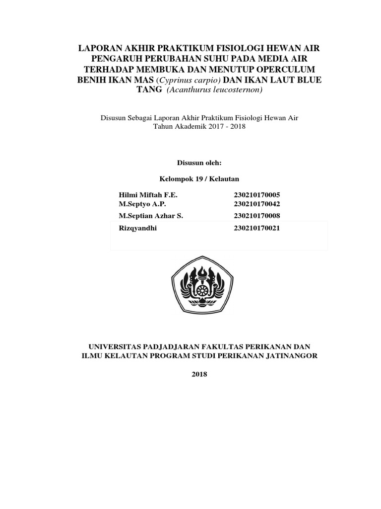 DOC) Pengaruh Perubahan Suhu Panas Media Air Terhadap Membuka dan Menutup Operkulum Benih Ikan Mas (Cyprinus Carpio) | Ayunani Agustina - Academia.edu