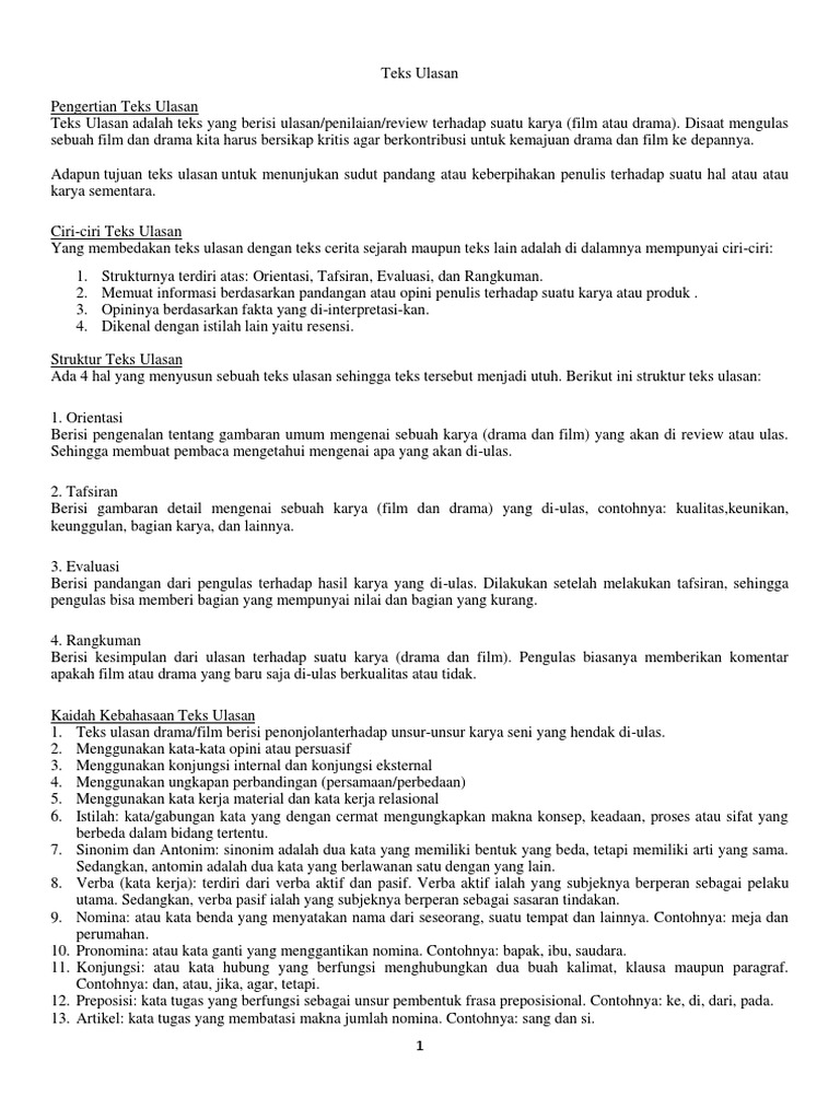 Teks Ulasan : Contoh, Struktur, Tujuan, Ciri-Ciri dan Kaidah Teks Ulasan