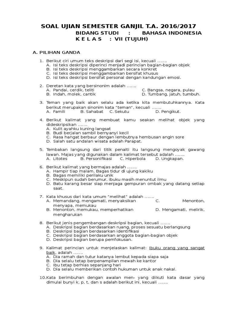 DOC) BANK SOAL KELAS VII Bab 1 Teks Deskripsi | Desry Silaban - Academia.edu