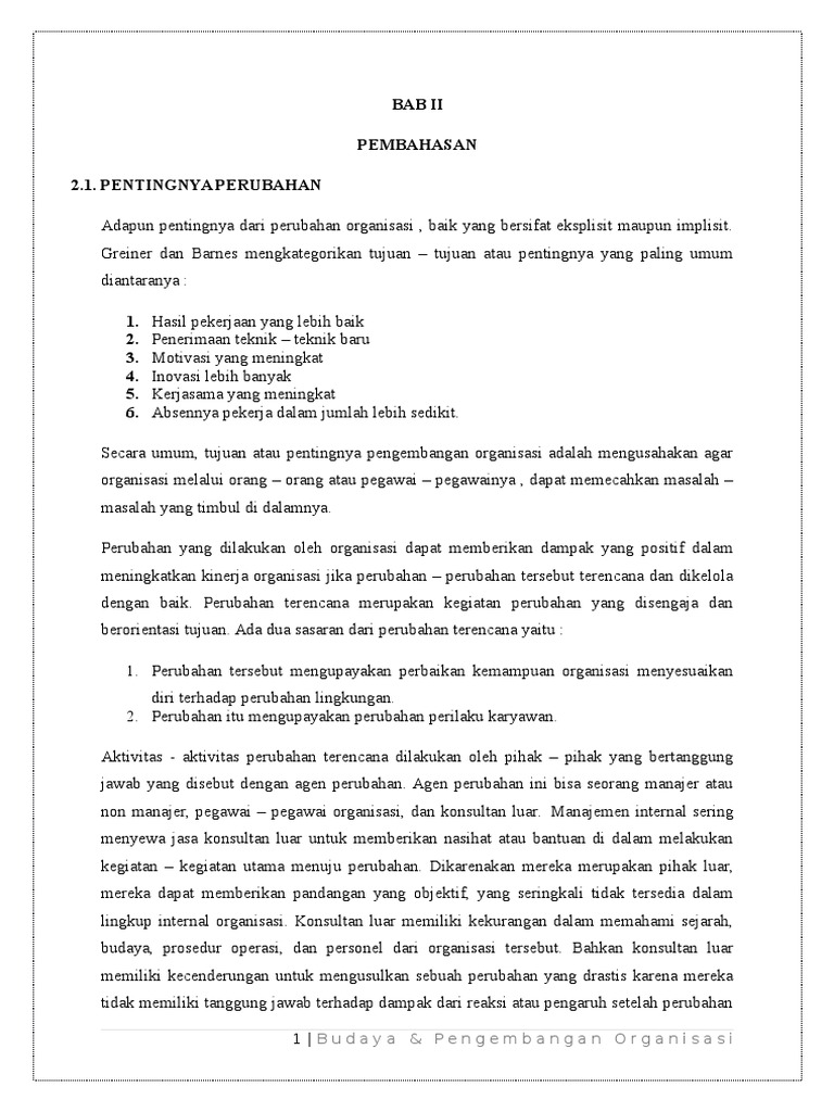 Bab Ii Pembahasan 2.1. Pentingnya Perubahan: Budaya & Pengembangan …