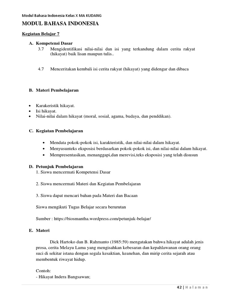 DOC) RPP K13 Bahasa Indonesia SMA Kelas X KD 3.8 dan 4.8 Hikayat (cerita rakyat).docx | Agus Masdika - Academia.edu