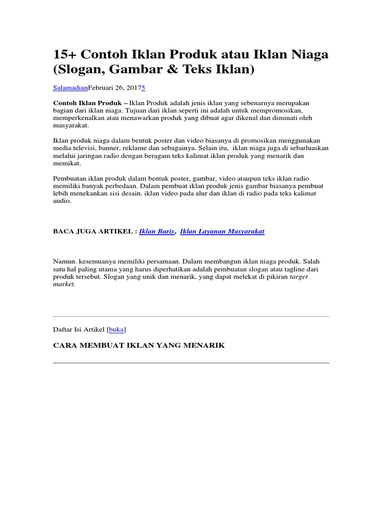15+ Contoh Iklan Produk atau Iklan Niaga (Slogan, Gambar & Teks Iklan) | Salamadian