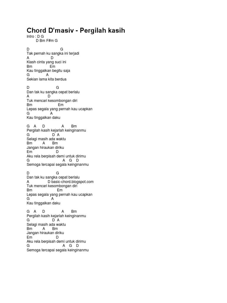 Chord D’masiv - Pergilah kasih