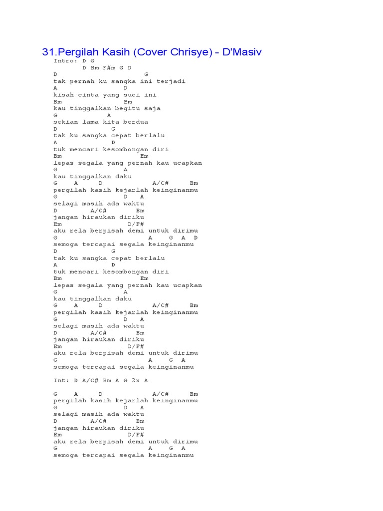 Chord Pergilah Kasih (Cover Chrisye) By d’Masiv | Chordlicious