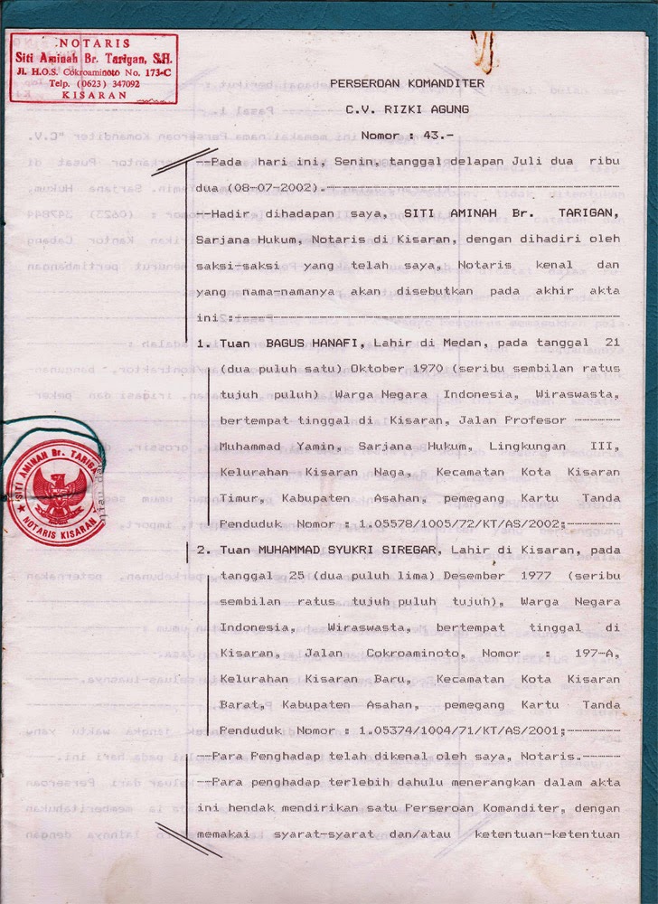 Contoh Akta Pendirian CV | Akta Notaris CV | Template Akta CV by …