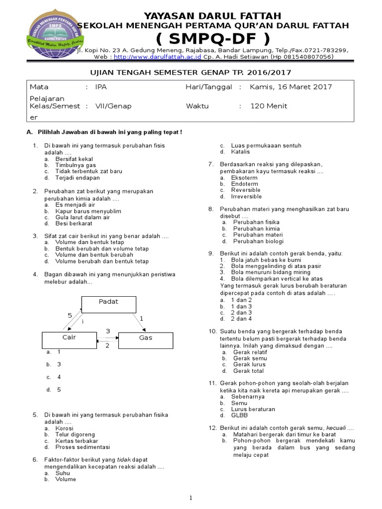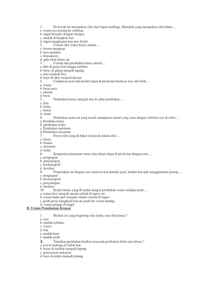 Soal perubahan fisika dan kimia kelas 7 kurikulum 2013 edisi …