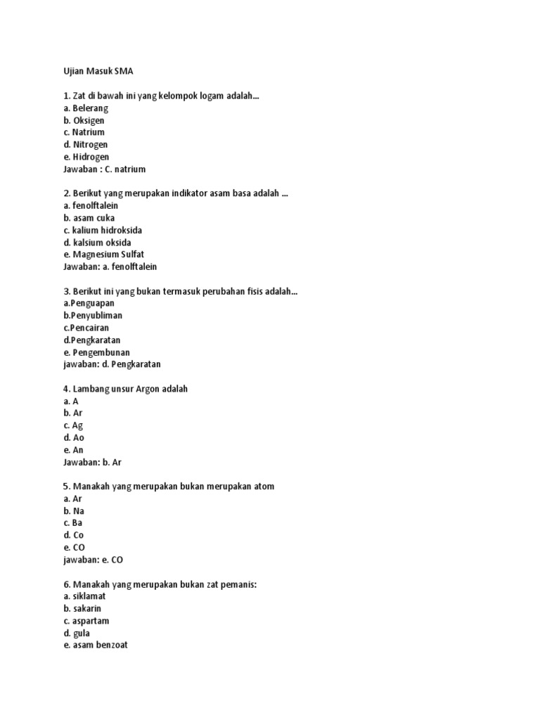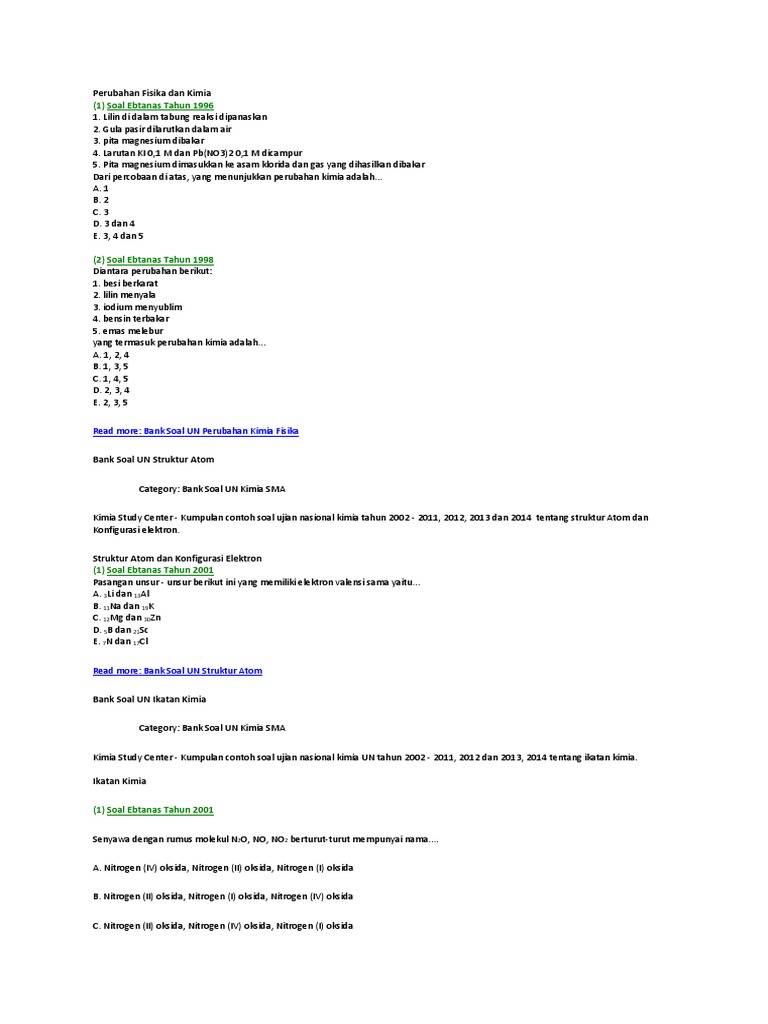 DOC) Soal Pilihan Ganda Kimia Kelas X Semester 1 & 2 | Irfan Kamal …