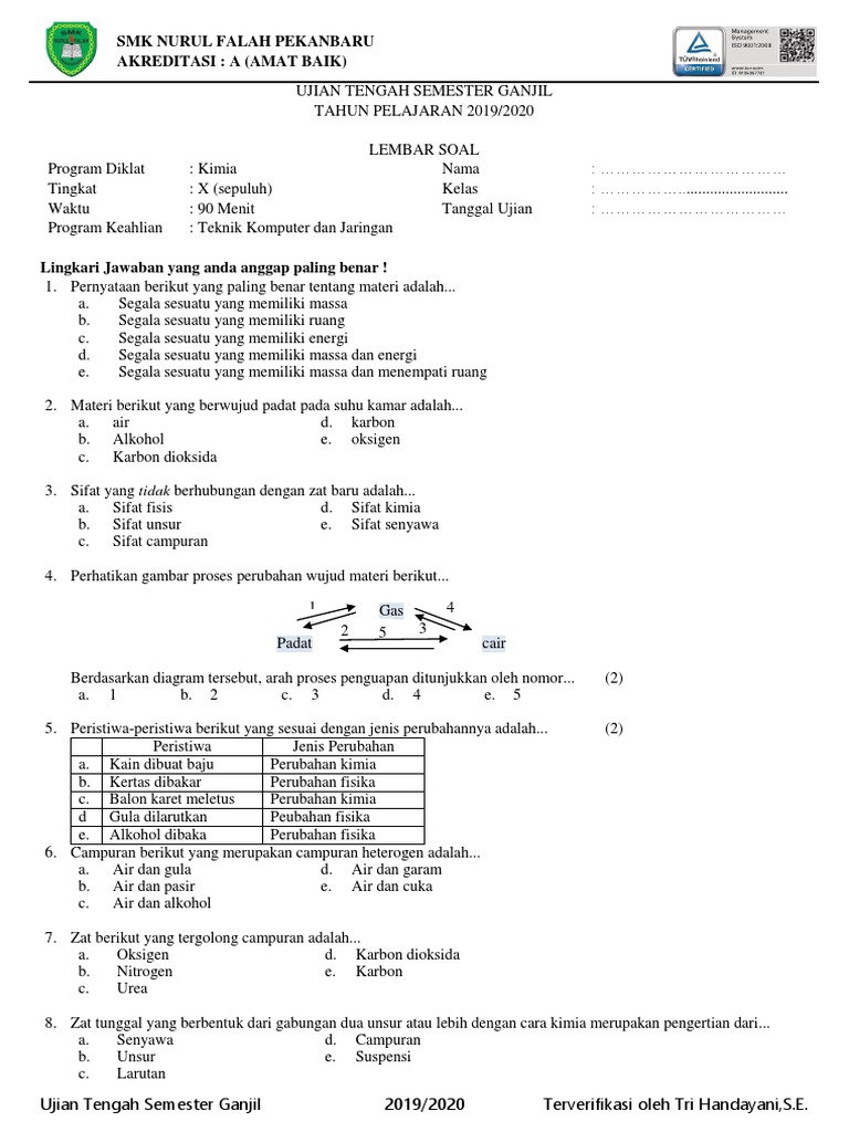 Soal perubahan fisika dan kimia kelas 7 kurikulum 2013 edisi …