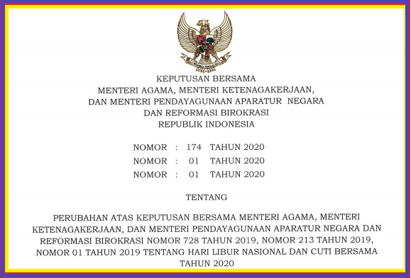 SKB Perubahan Kedua Cuti Bersama dan Libur Nasional Tahun 2020 - Berkas Edukasi