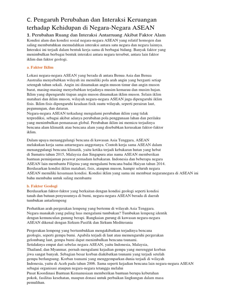 Perubahan Ruang Dan Interaksi Antarruang Asean Karena Faktor Alam