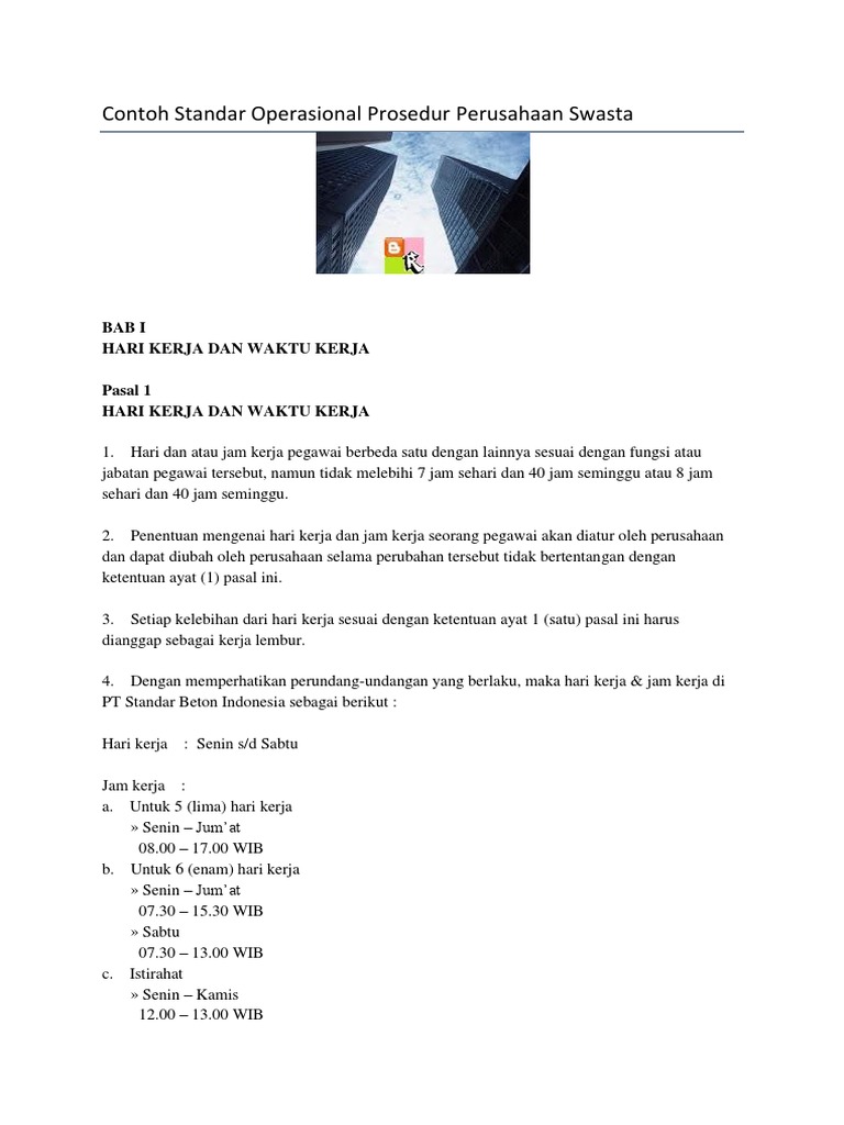Contoh Standar Operasional Prosedur Perusahaan Swasta