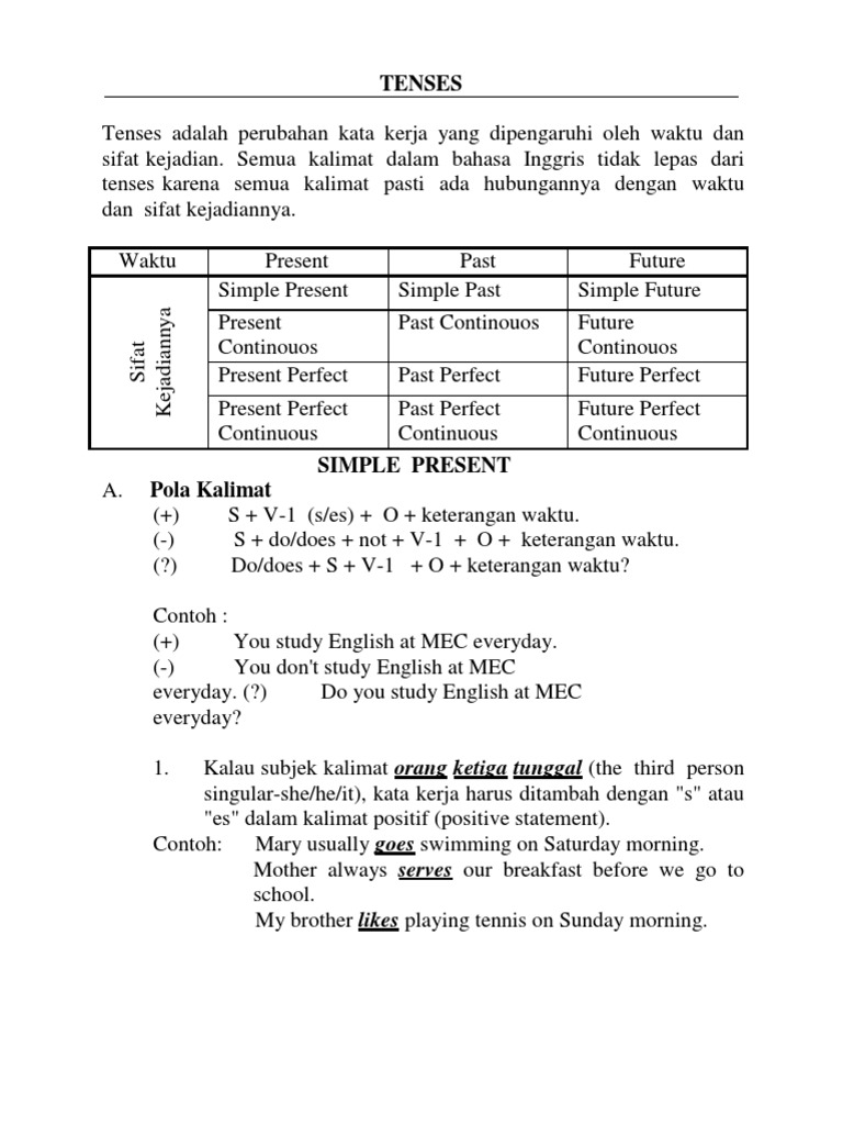 DOC) Tenses: Perubahan Kata Kerja Berdasarkan Waktu | Sekar Arum Fitriseva - Academia.edu