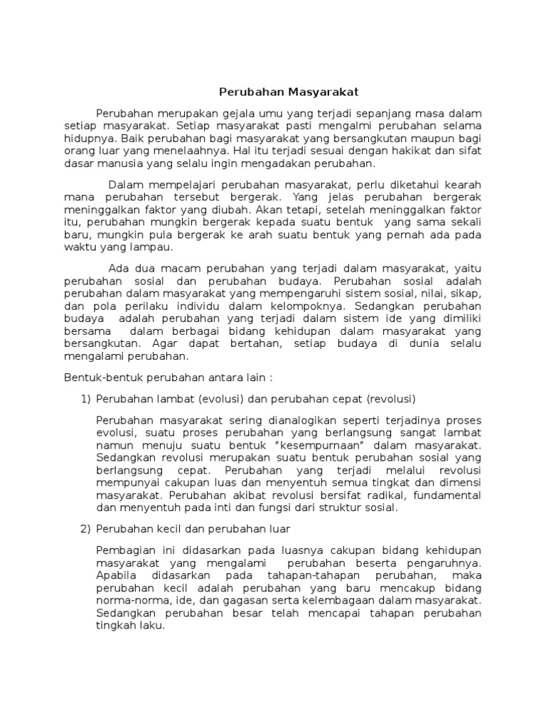 Contoh Perubahan Sosial , Budaya, Masyarakat beserta Gambar | dosenpintar