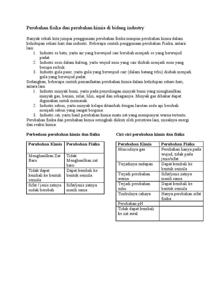 Contoh perubahan fisika dan perubahan kimia - Fisika dan Matematika