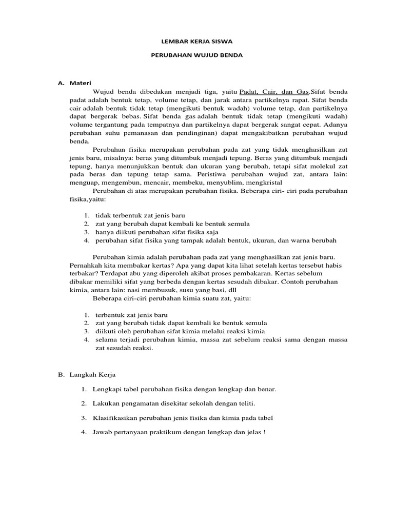 DOC) LKS PENGAMATAN PERUBAHAN FISIKA DAN KIMIA | Gresi Dwiretno - Academia.edu