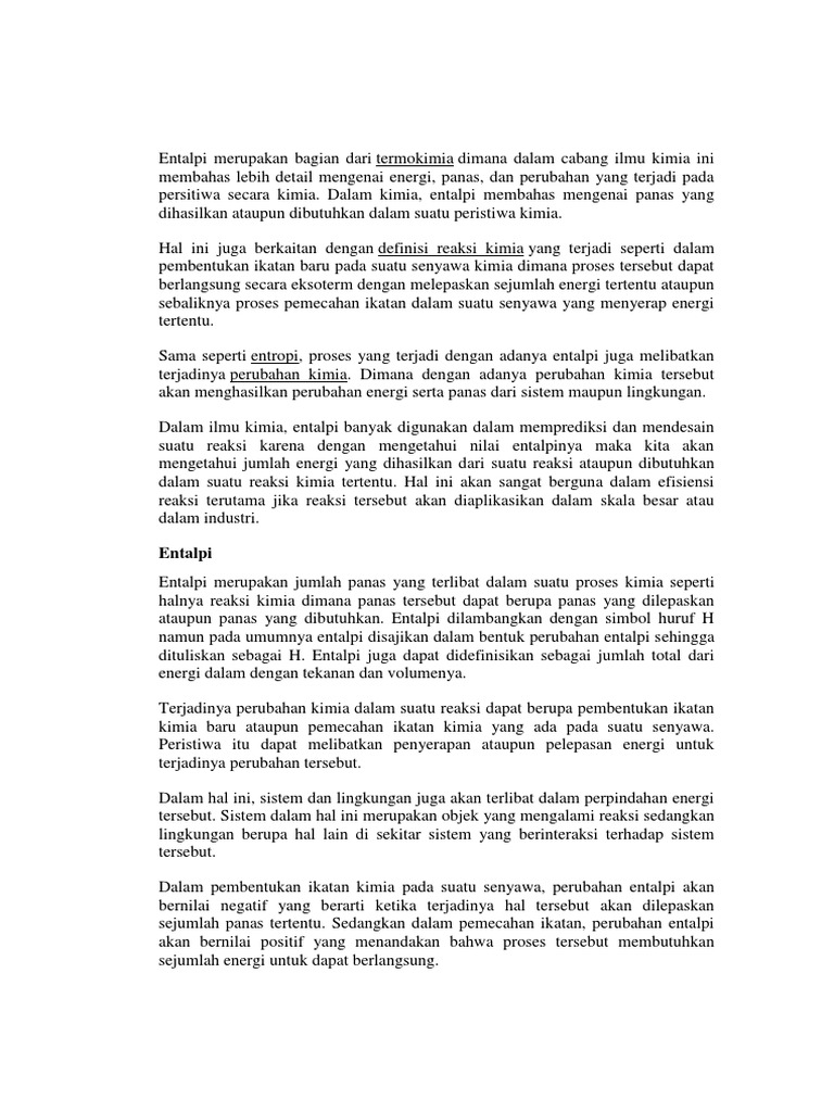 Pengertian Entalpi, Jenis, Rumus, dan Contoh Soalnya | Ilmu Kimia