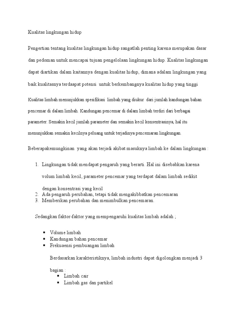 DOC) Makalah kualitas lingkungan hdp berdasarkan kriteria bio fisik, sosbud | ALYA RAISA NADYA barabai - Academia.edu
