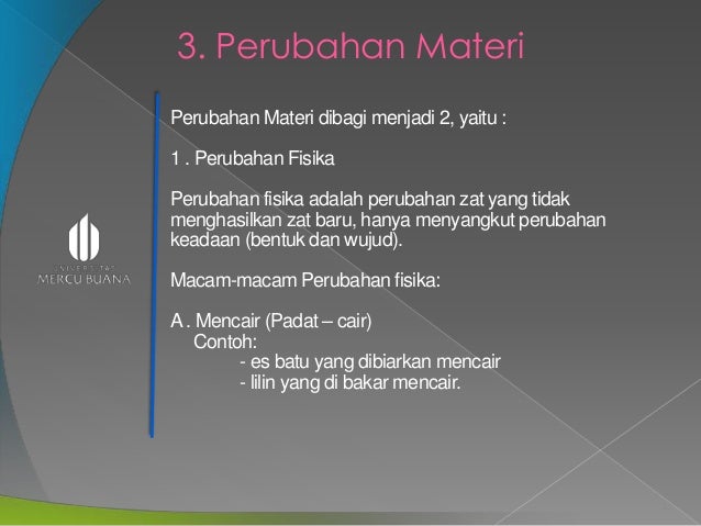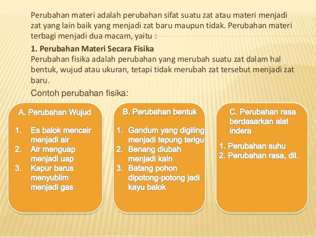 sebutkan macam-macam perubahan materi beserta contohnya - Brainly …