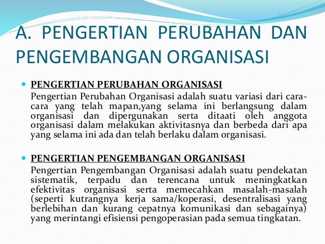 Pengertian perubahan dan pengembangan organisasi