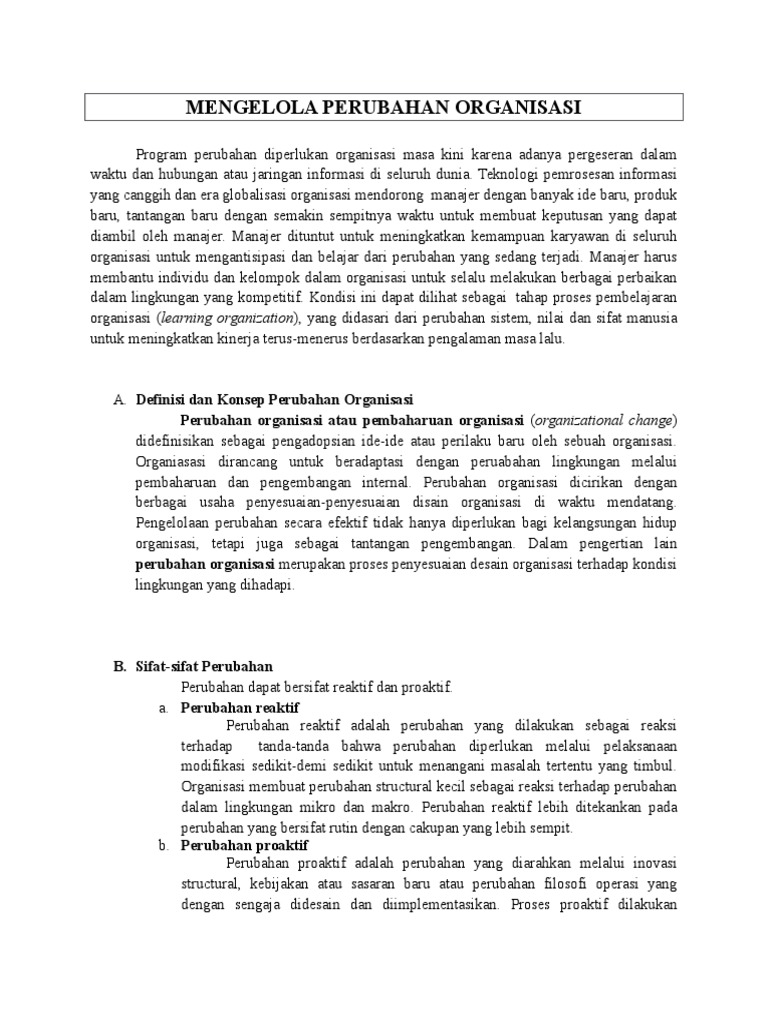 DOC) PERUBAHAN DAN PENGEMBANGAN ORGANISASI.doc | Ririn Liana - Academia.edu