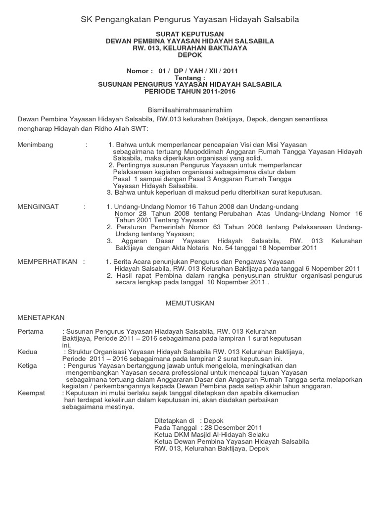 Contoh Sk Pengangkatan Ketua Yayasan - Guru Ilmu Sosial