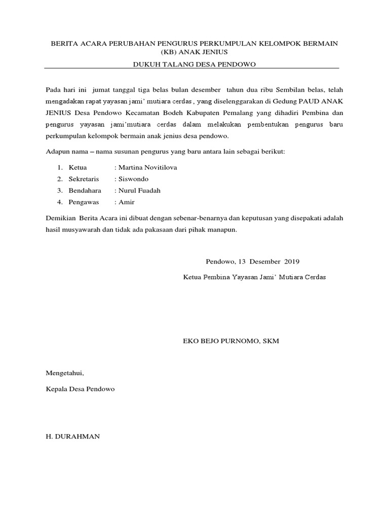 Contoh Berita Acara Pergantian Pengurus Yayasan Contoh Cox - Cute766