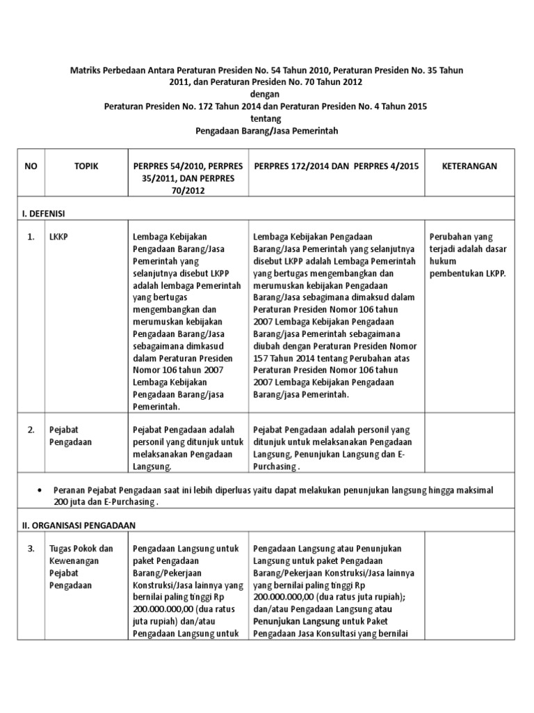 Pengertian Pengadaan Barang/Jasa (Matriks Perbedaan Perpres 54 …