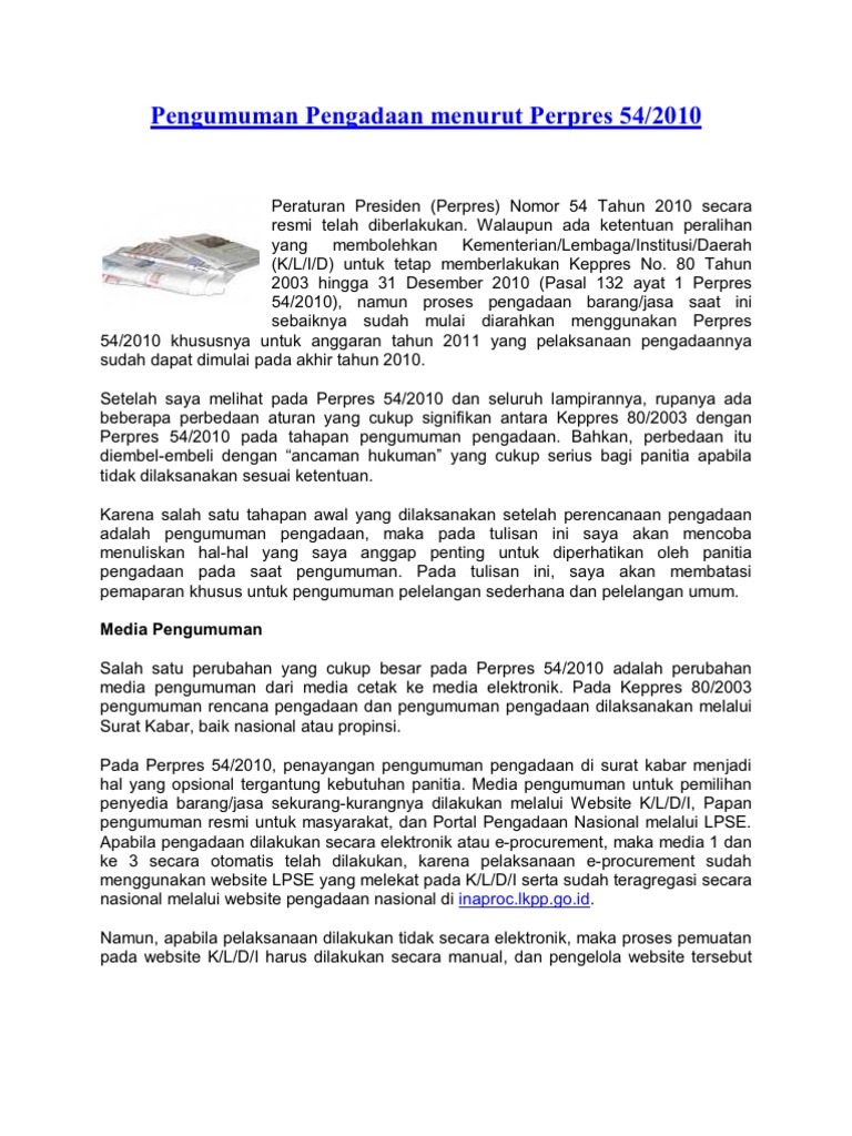 Perpres 54 Tahun 2010