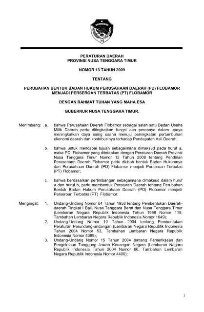 1 peraturan daerah provinsi nusa tenggara timur nomor 13 tahun …