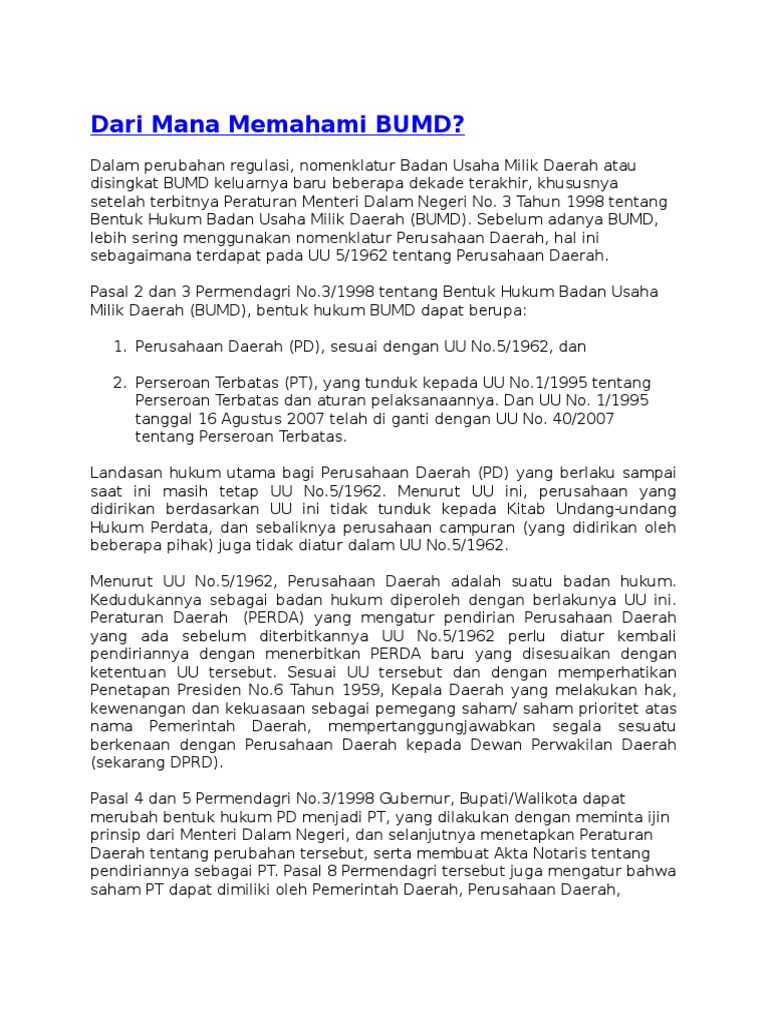 Bentuk Hukum Badan Usaha Milik Daerah