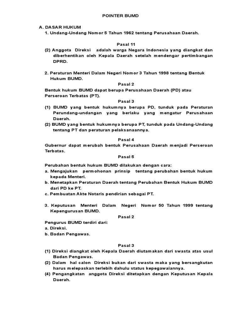 Perubahan Perusahaan Daerah Menjadi Pt