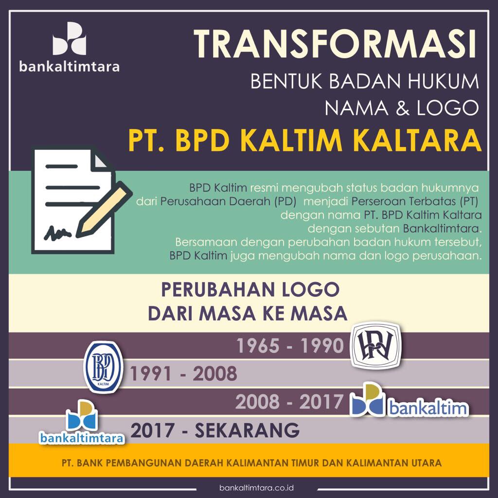 Bernard Batubara: “Salah satu hobi saya adalah mengamati logo-logo perusahaan. #Barutahu kalau BPD Kaltim sekarang udah ganti nama jadi Bankaltimtara. Tadinya Perusahaan Daerah (PD) sekarang jadi Perseroan Terbatas (PT). Logo yg