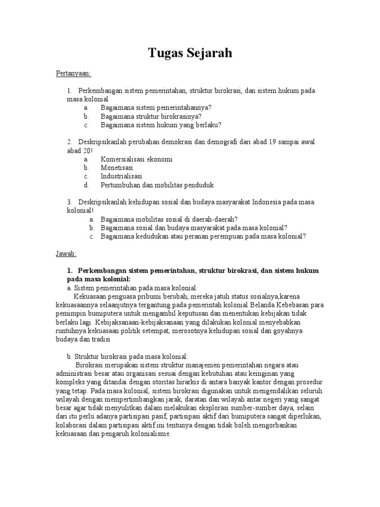 1.Jelaskan perbedaan perubahan masyarakat pada penjajahan Masa Kolonial dan pada masa penjajahan - Brainly.co.id