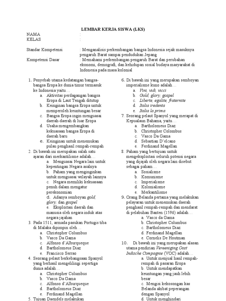 35 Soal - Jawaban Kolonialisme dan Imperialisme (Pilgan & Portofolio) - Muttaqin id