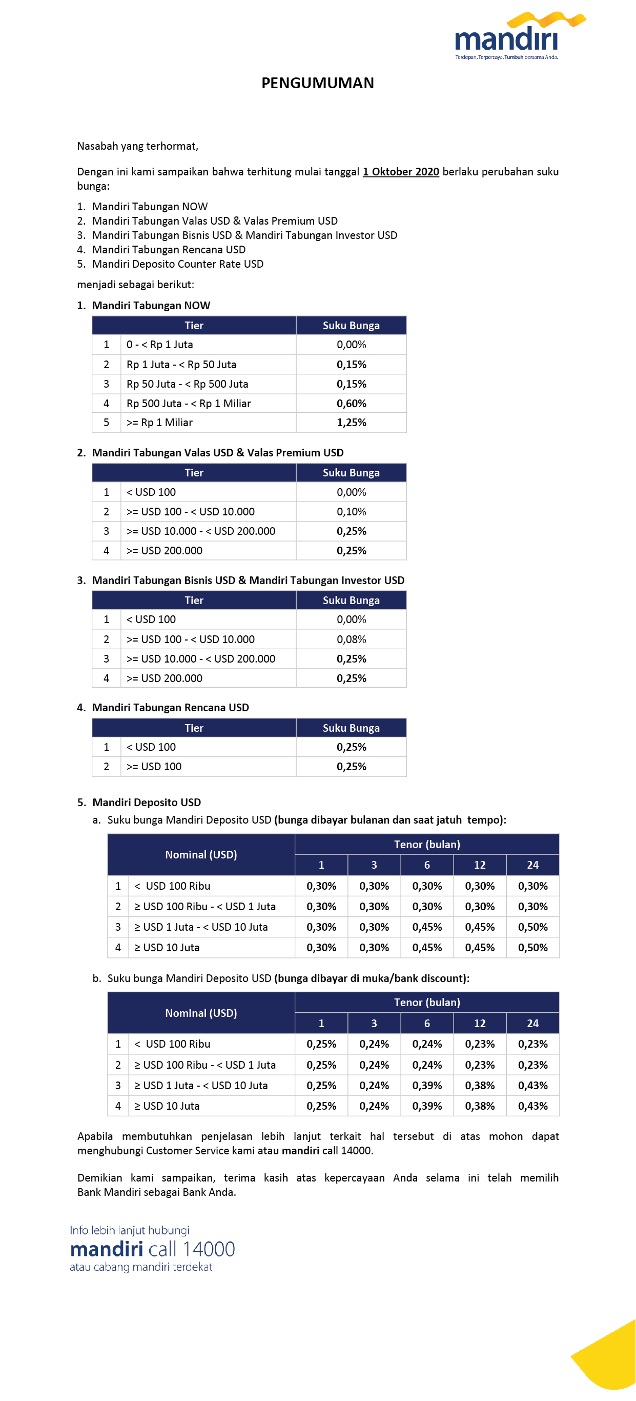 Perubahan Bunga / Nisbah Tabungan CIMB Niaga. Berlaku efektif per tanggal 20 April 2020