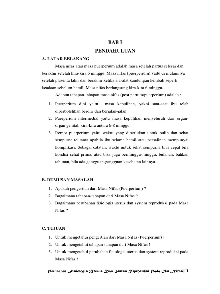 DOC) Makalah Perubahan fisiologis sistem reproduksi pada ibu nifas | Septian Raha - Academia.edu