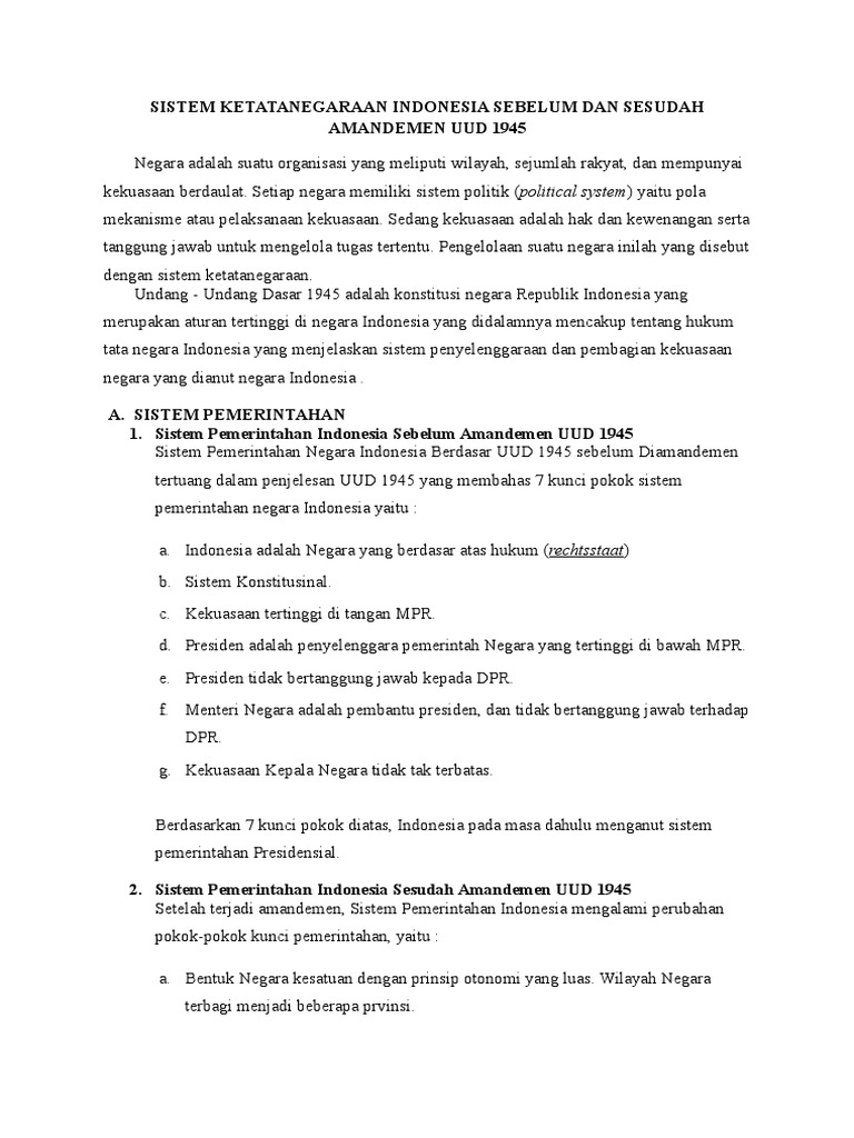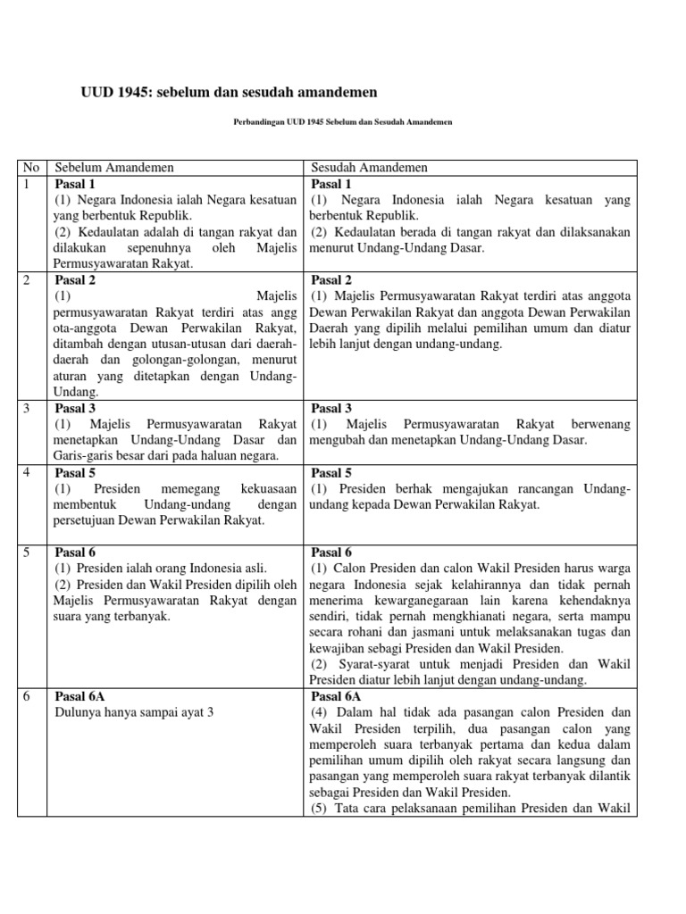 Perbandingan Uud 1945 Sebelum Dan Sesuda