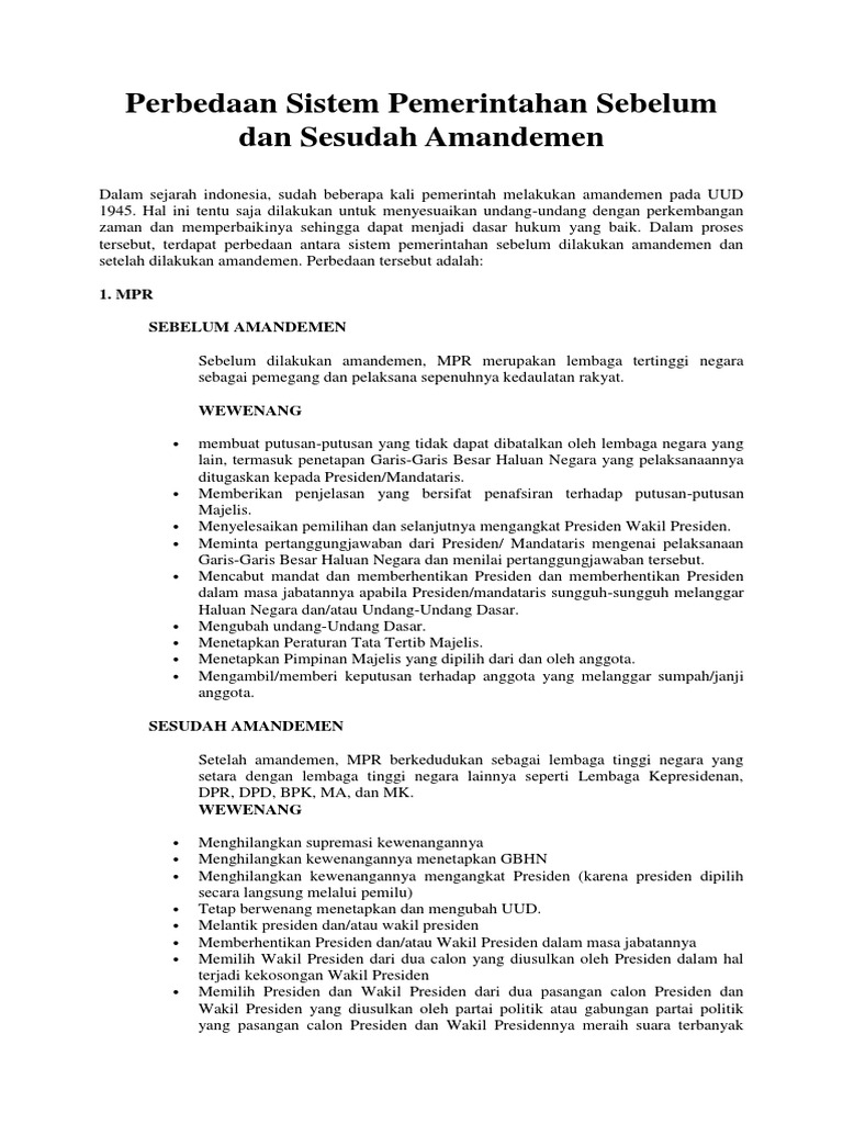 Perbedaan Sistem Pemerintahan Sebelum Dan Sesudah Amandemen