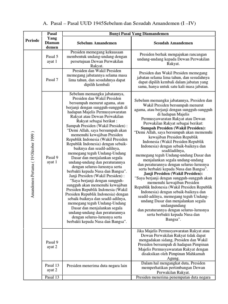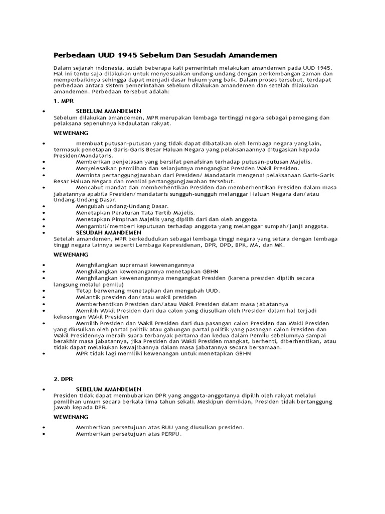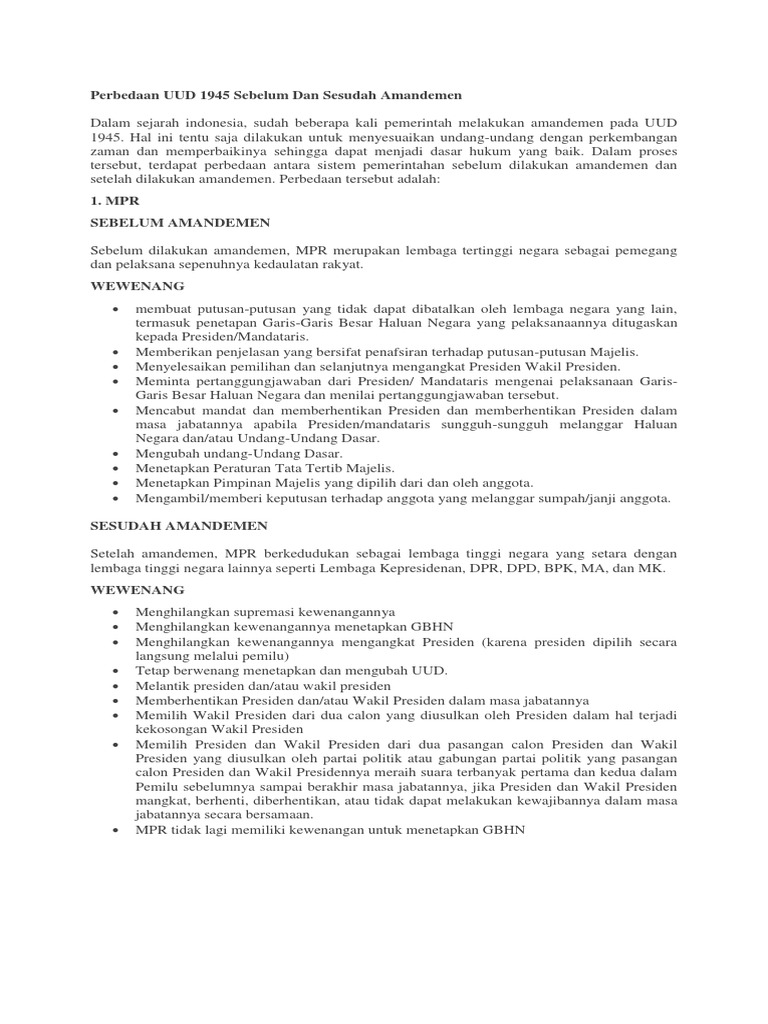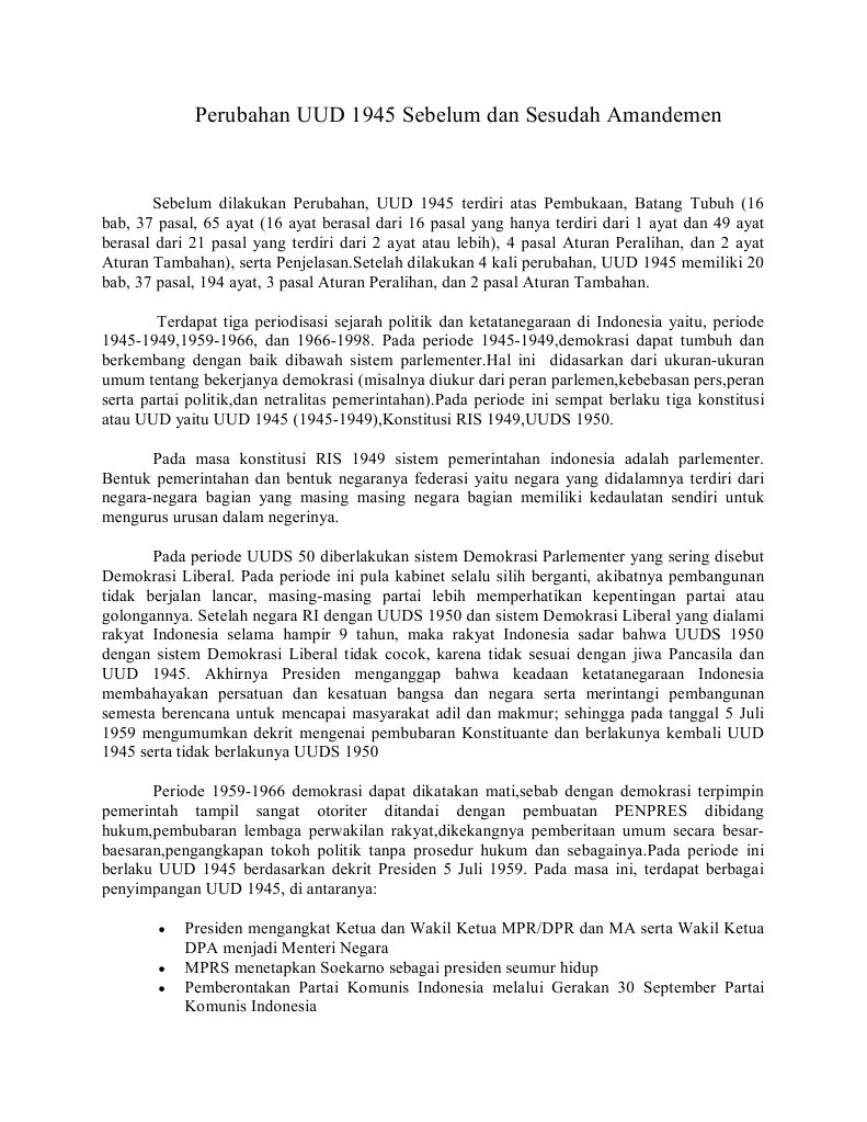Perubahan Uud 1945 Sebelum Dan Sesudah Amandemen