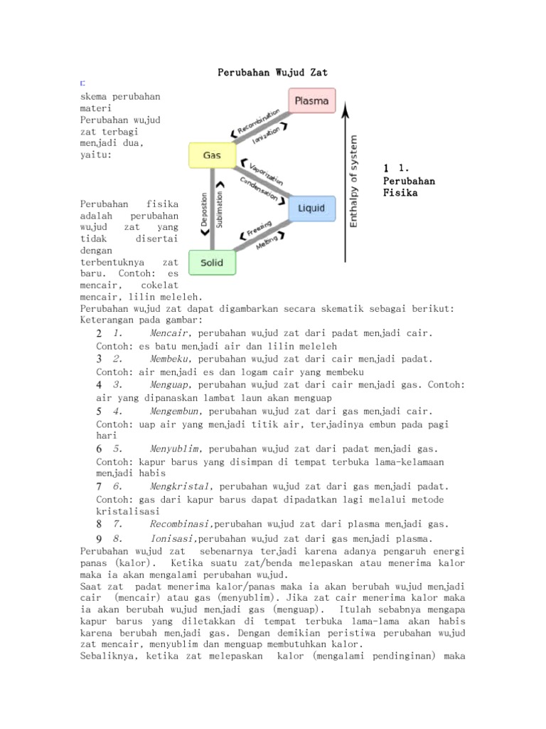sebutkan 5 jenis perubahan wujud benda dan berikan contoh peristiwa perubahanya - Brainly.co.id