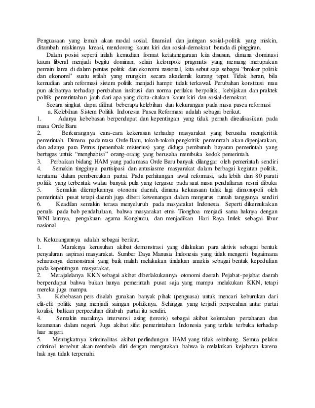 Kondisi indonesia pasca reformasi dalam bidang politik