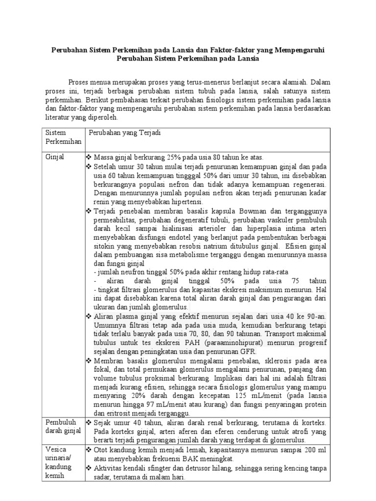 Perubahan Fisiologis Sistem Perkemihan Pada Lansia